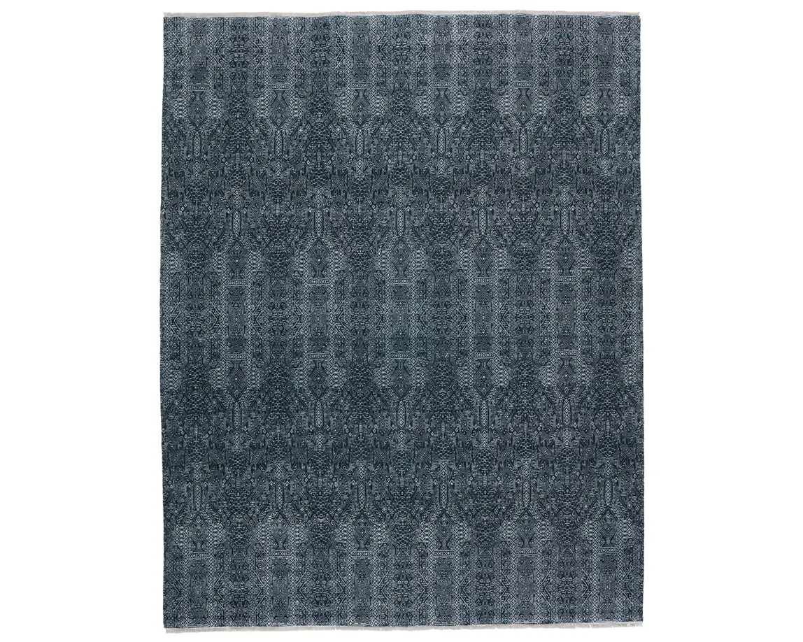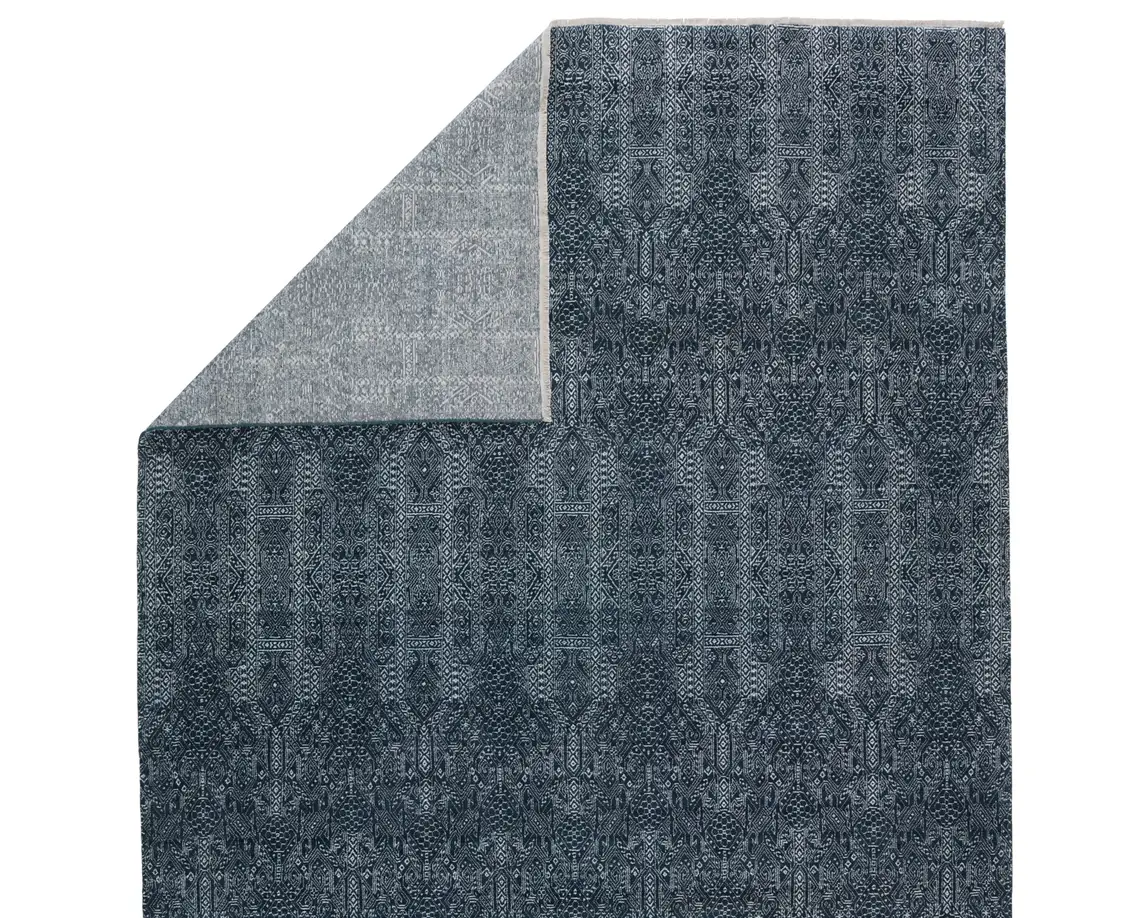 The Merritt collection brings texture to any room with fine-lined grass patterns and on-trend colorways. The plush and luxuriously dense wool and viscose pile emulates a handmade feel, while the precision of the power-loomed construction proves eye-catching and impressively rich with detail. The Bram rug boasts a deep blue and ivory colorway for a rich and moody addition to any room.